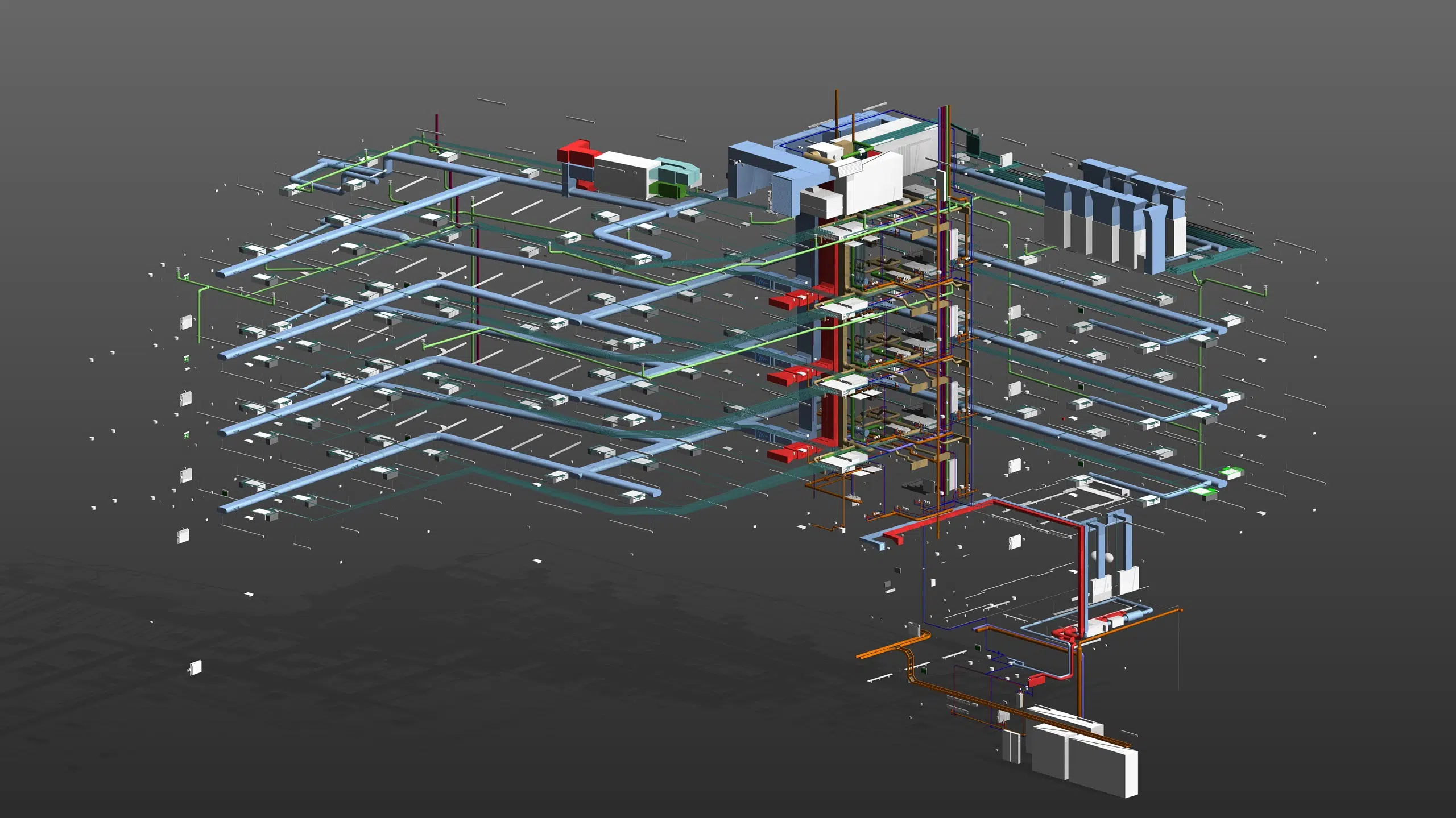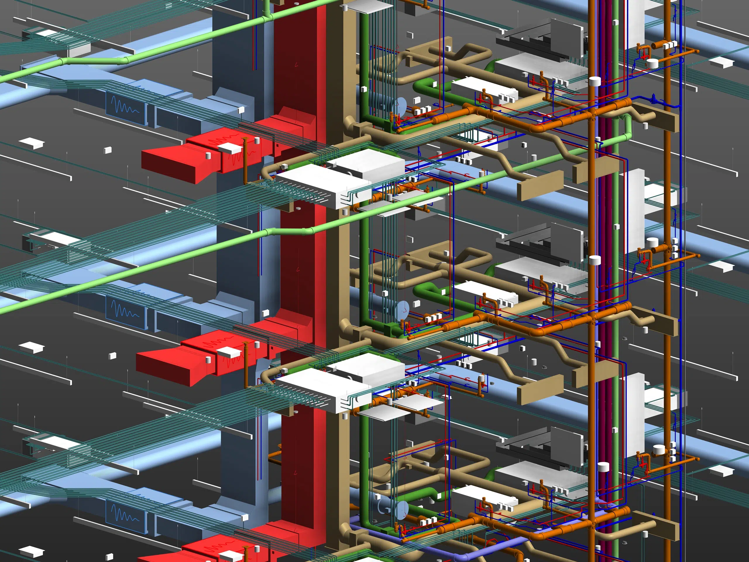 - MEP Modelling and Coordination: We created detailed MEP models in Revit, ensuring accurate and efficient integration of all systems within the building's existing structure. This included precise modelling of HVAC systems, cable containment, drainage pipework, and wet systems.